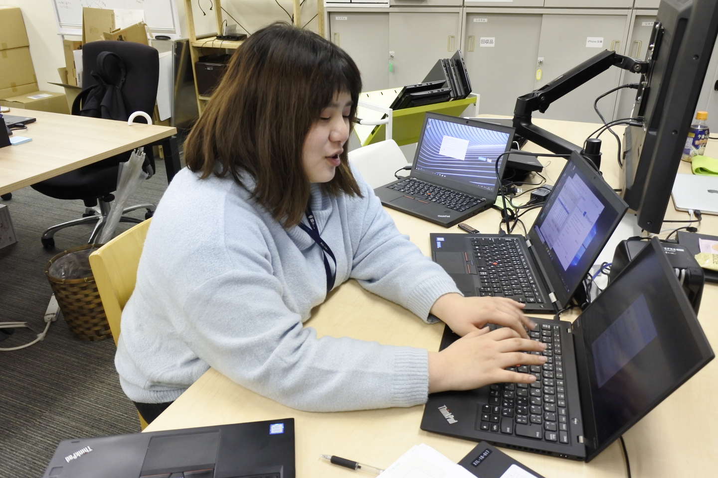 私が担当しているのは、情シスの「サポートスタッフ」の業務。一般的なバイトよりも、自分だけが持つ責任は意外と少なかったりします。自分だけで判断したり、責任を負うことがないからこそ、同じ部署の人に分からないことや不安なことはどんどん聞ける。聞けばきちんと教えてくれるし、確認してくれる環境だったから、私は自信をもって確実に業務を遂行することができました。