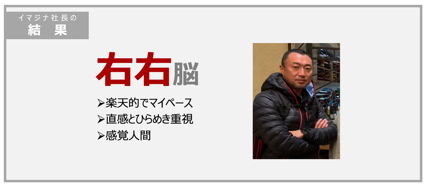 イマジナは業種的にいうと「コンサル」に入りますが、結果の通りかなり右脳人間が集まっている組織でもあります。