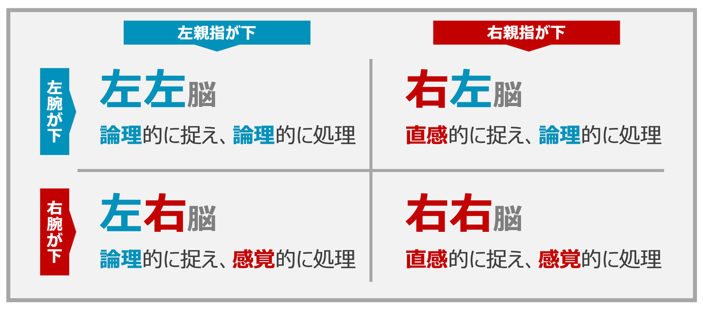 腕の組み方:アウトプットをどちらの脳でしているのか