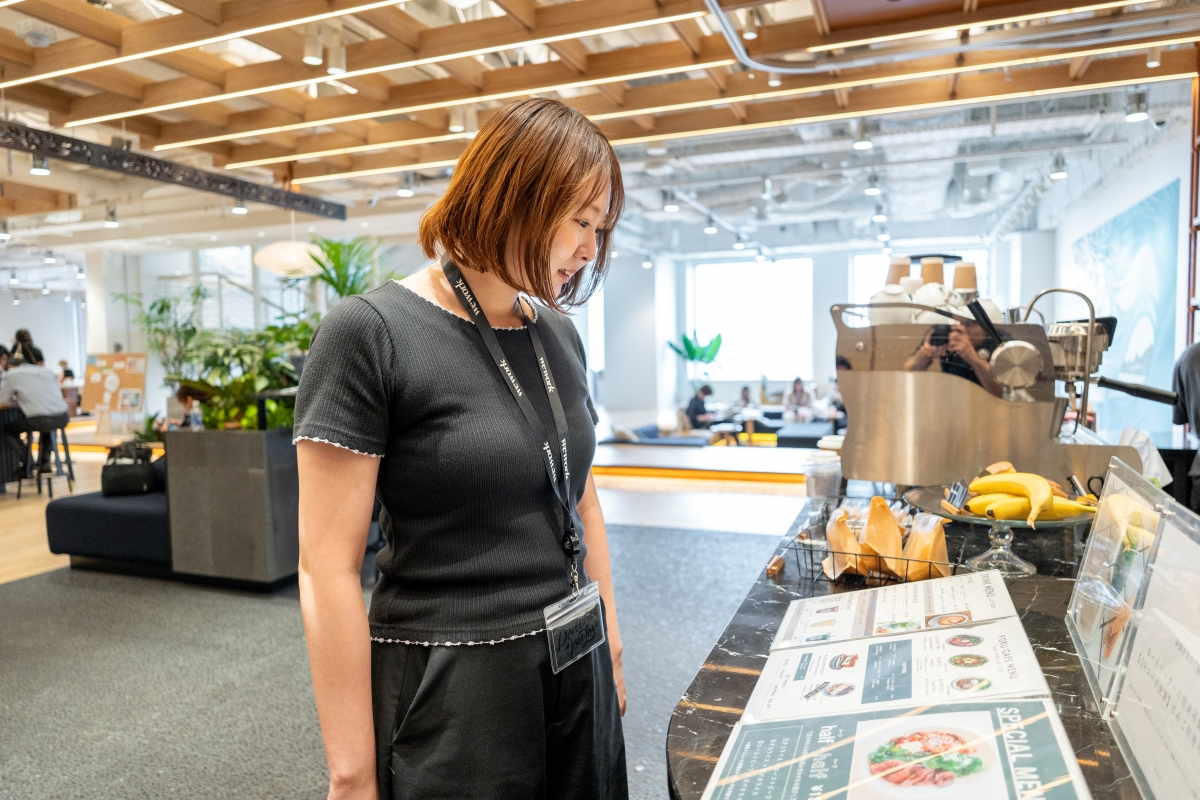 ランチの時間は営業先も離席しているので、できるだけランチの間に合わせて取るようにしています。オフィス下に出店しているキッチンカーなどを利用することもありますが、最近は暑い日が続いていたので、WeWork内のカフェをよく利用しています。