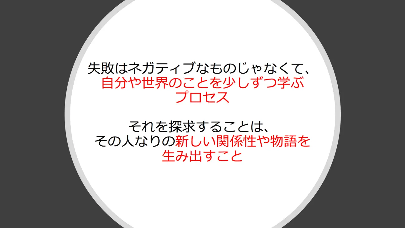 まずは、私の友人が映画製作の失敗をきっかけに、そのロケ地について勝手に何年もリサーチして学んでいったという事例を紹介しました。その友人は失敗をネガティブだとは捉えていませんでした。