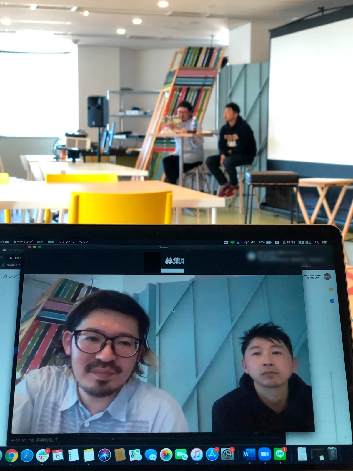 新入社員1年目の板倉さん(ロン毛)と入社5年目の大浦さん(丸メガネ)が登場。話す内容はオフラインだろうがオンラインだろうが、変わりません。仕事のこと、インフォバーングループのこと、業界のことを話してもらいました。