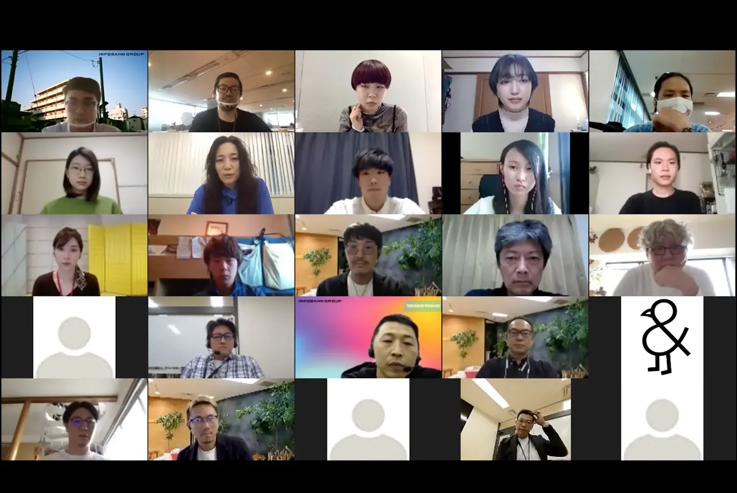 Zoomのスピーカービューでスクショするのを忘れてしまいました。青い服の女性がインフォバーングループ代表の今田です。