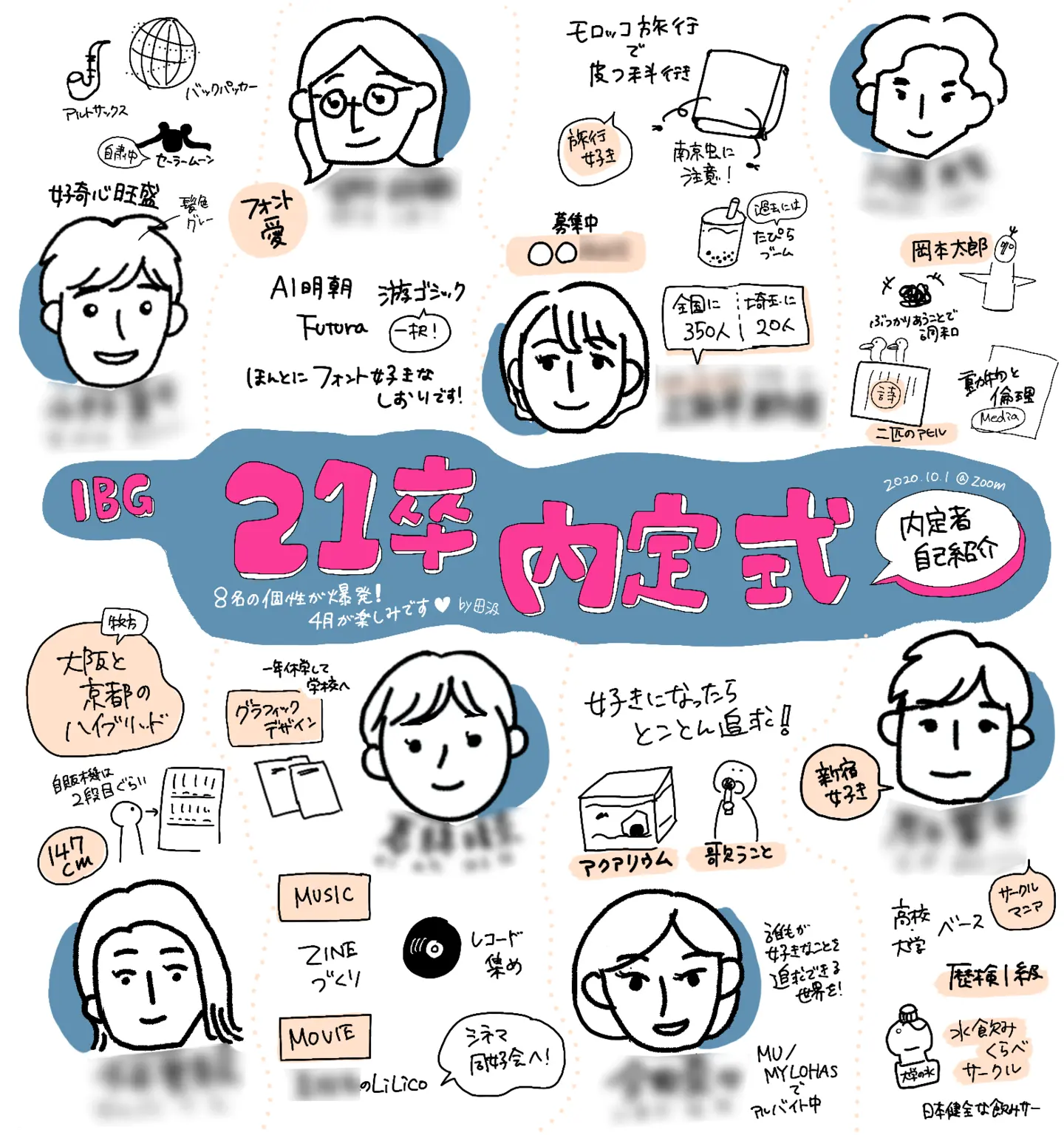 内定式の後、グラフィックレコーディング部のメンバーにステキなグラレコを描いてもらいました。グラレコも以前は模造紙に描いてもらっていましたが、今年はiPadで。