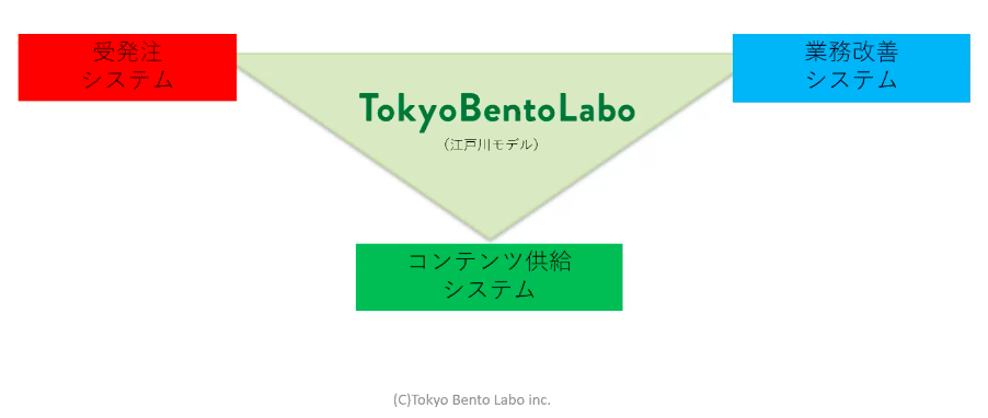 この課題を打破するために考えたのが、受発注、業務改善、コンテンツ供給を掛け合わせた「江戸川モデル」です。