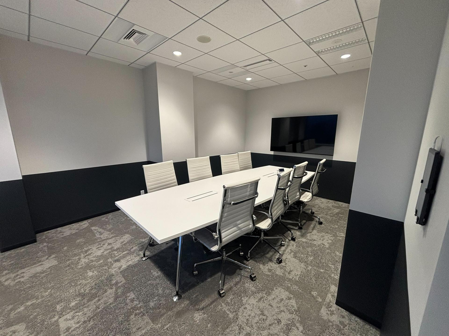 会議室はモノトーンを基調に、落ち着きと集中しやすさを兼ね備えたデザインとなっています。モニターやホワイトボードを設置し、よりよい会議環境づくりに取り組んでいます。会議室によっては窓に面している部屋もあり、開放感のある雰囲気の中でミーティングが可能です。落ち着いた空間だからこそ、様々なアイディアが生まれる場となっています。