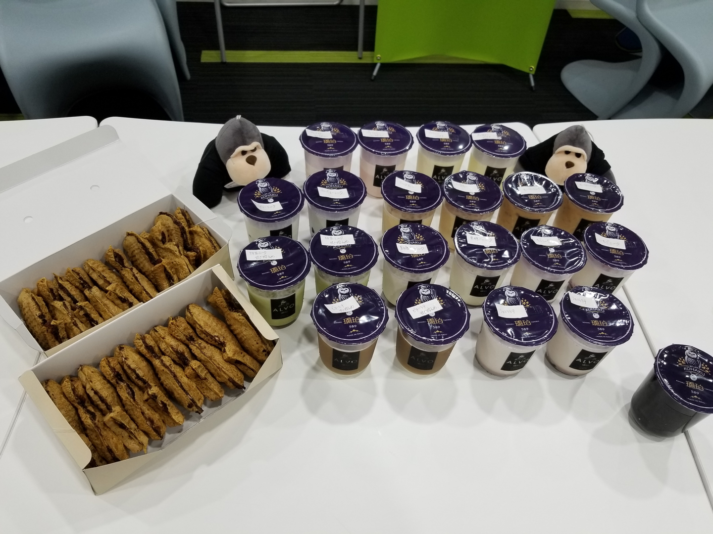 今月はコロナの影響で、リモート組も多いと言うことで、すぐ届くタピオカとたいやきにしました(﹡’ω’﹡)