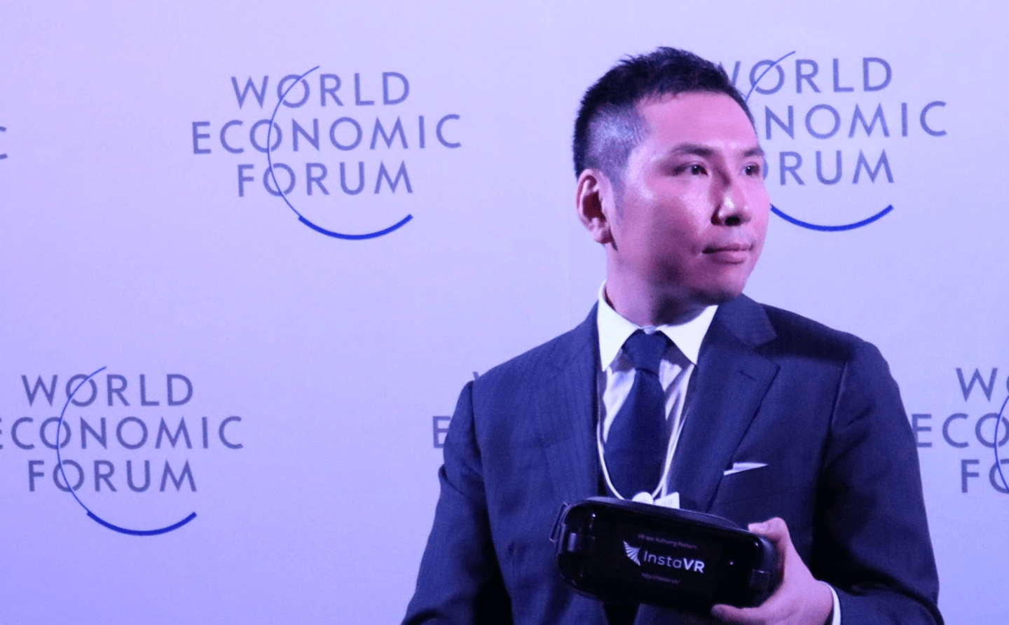 △ VRギアを片手に、世界経済フォーラム、サマーダボス会議に参加するInstaVR代表芳賀