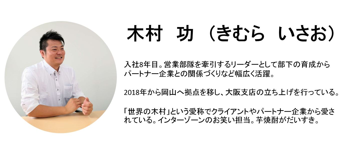 僕が岡山に拠点を移すことになったとき、鏡山さんから好都合だと言ってくれたんですね。西で拠点展開をするにしても、群馬にいる社員を無理矢理連れて行っても良い結果にはならないし、関西で腰を据えて活動できる社員が社内に今いるということは逆に都合がいいと。