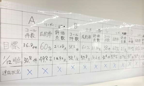 その影響か、コールセンターの成績は下がり続けていたのです。成績を管理しているホワイトボードがあって、私が異動して以来ずっと、成績未達成の「バツ」が書かれていました。教育担当として何としてもこのバツをマルに変えなければと思って、11月に全コールスタッフに集まってもらい、話をしました。