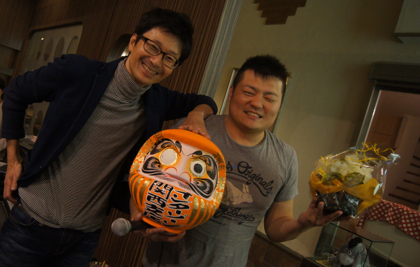 西日本オフィスの運用をスタートする際、新拠点に移る木村さんを送り出す鏡山社長