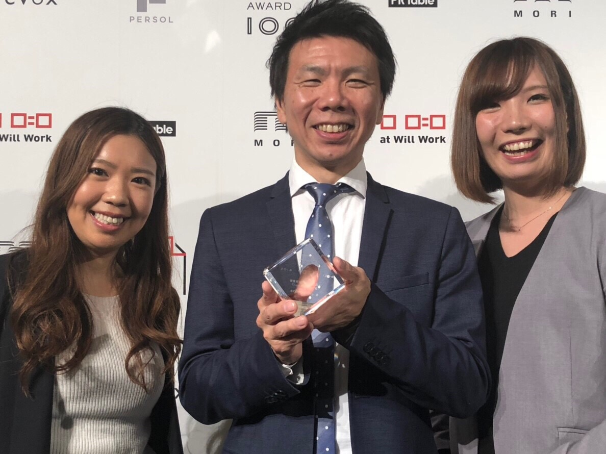Work Story Awardの表彰式でトロフィーを受け取った人事部メンバー