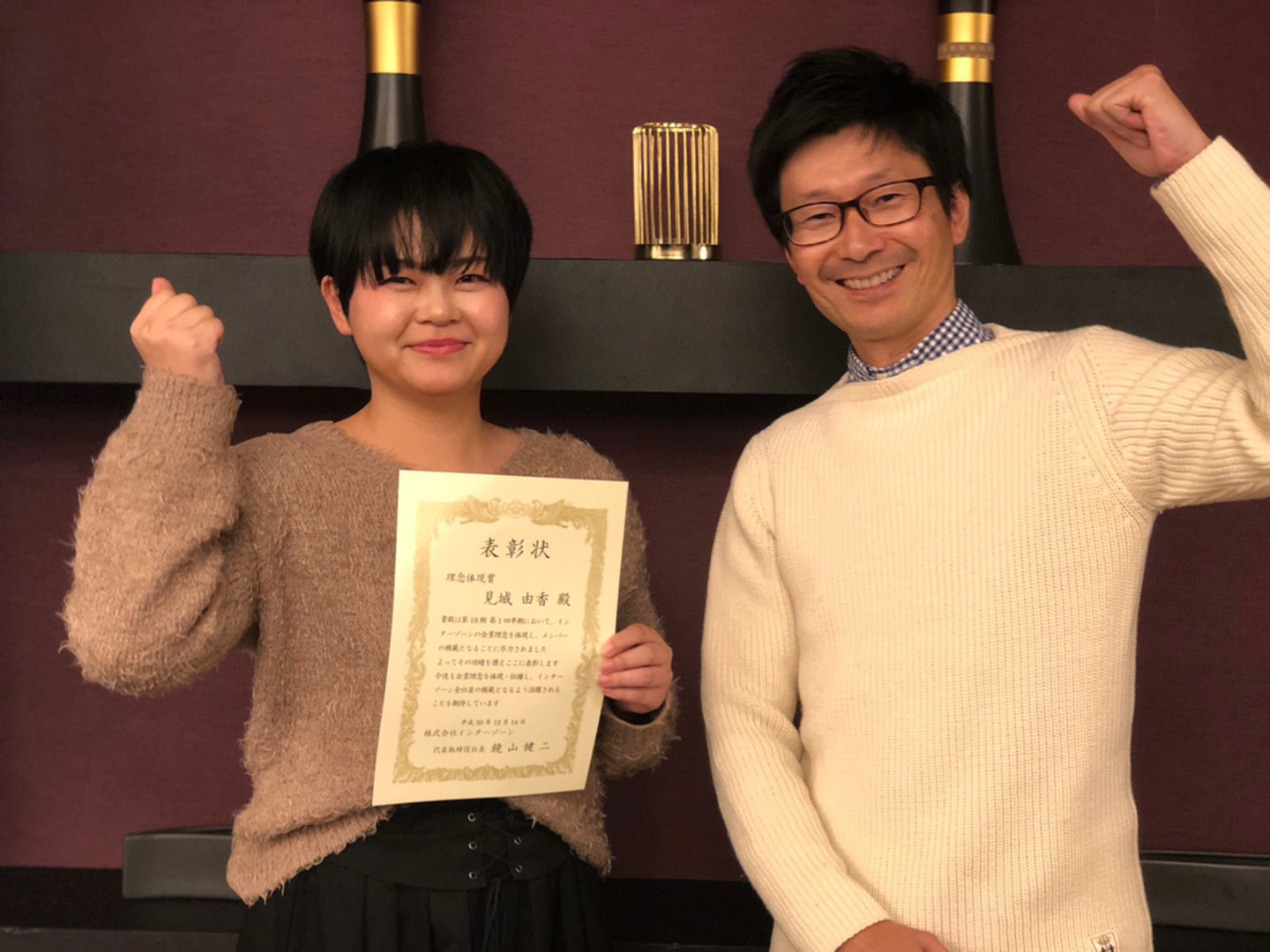 インターゾーンでは3カ月に一度、「経営会議」というスタッフが集まる総会があります。今回はこの集会で受賞者が発表されました。まったく予想しておらず、私の名前が呼ばれた時はひたすらビックリでした(笑)。