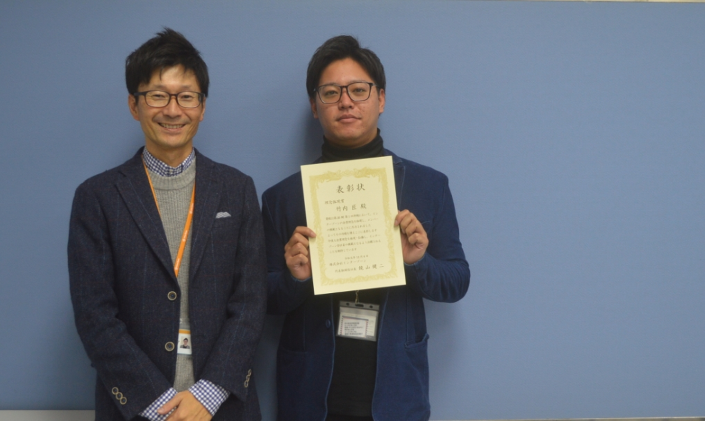 四半期に一度、インターゾーンの社内MVPに贈られる「理念体現賞」。今期1人目となる受賞者は、BPO事業部 環境推進チームの竹内匠(たけうち たくみ)さんです!
