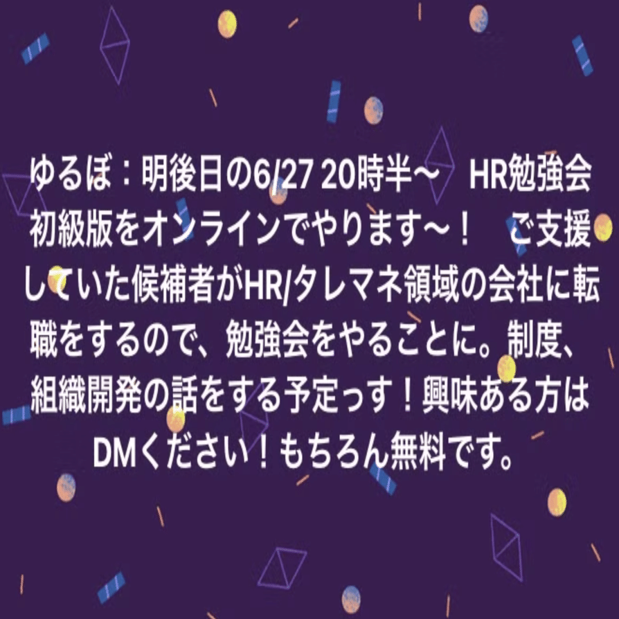 さらに、異業界から人材領域やHRテックサービスに転職が決まった方向けに、勉強会を開催することもあります。せっかくなので、転職者に限らず、人事のプロの方や人事に興味がある方にも参加してもらいました。