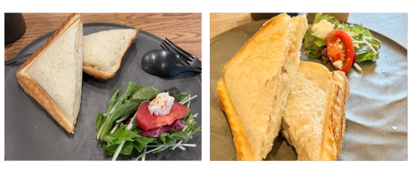 朝食はオルパで用意いただいた、トリュフベーカリーのパンでホットサンドを作って食べました🍞