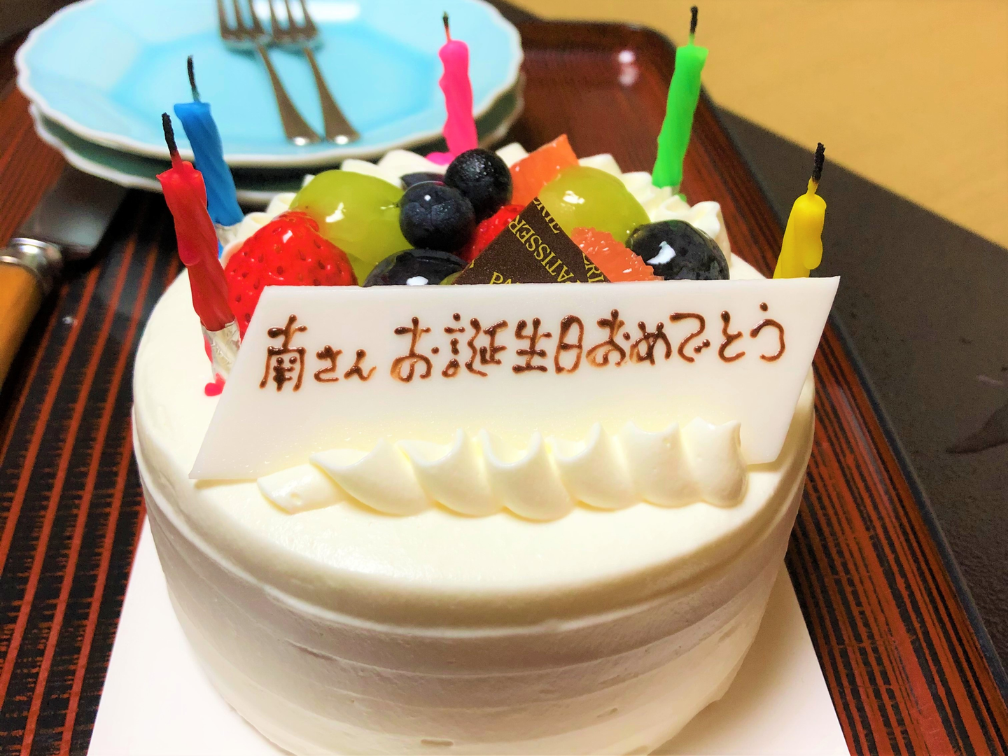 誕生日当日にバースデー休暇を取ったのですが、宿泊先で夫がサプライズに誕生日ケーキを用意してくれていました。