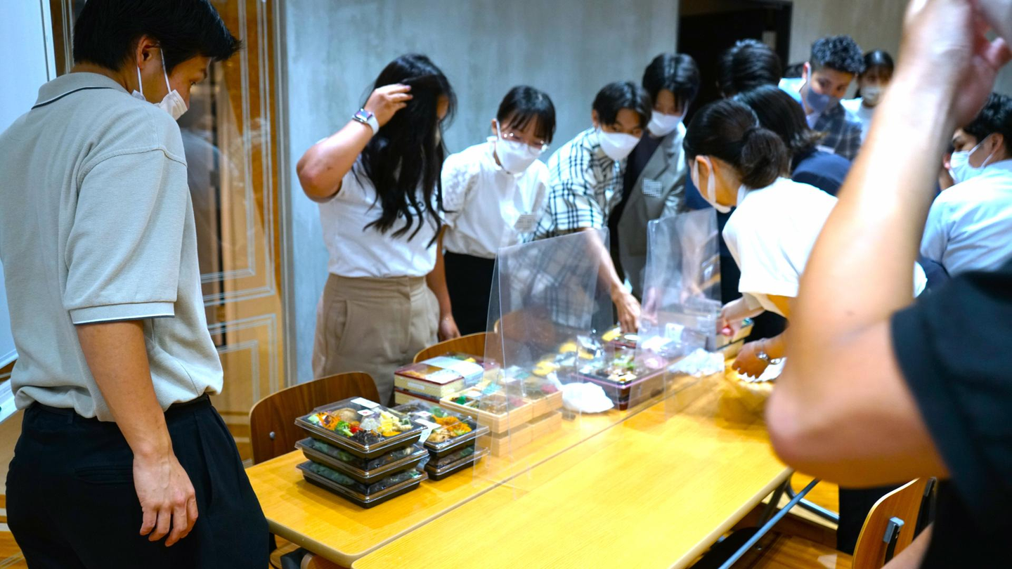 オリエンテーション後はお昼休憩!インヴァランスからの差し入れとしてお弁当をお配りしています。