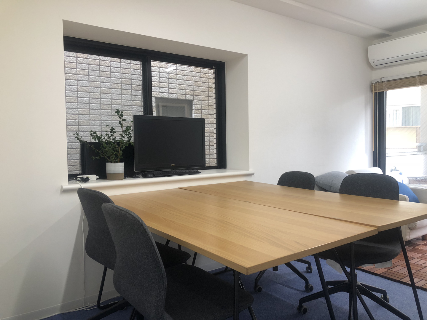 打ち合わせで使用するミーティングスペースです。弊社では毎週の月曜朝に全体MTGを行っています。