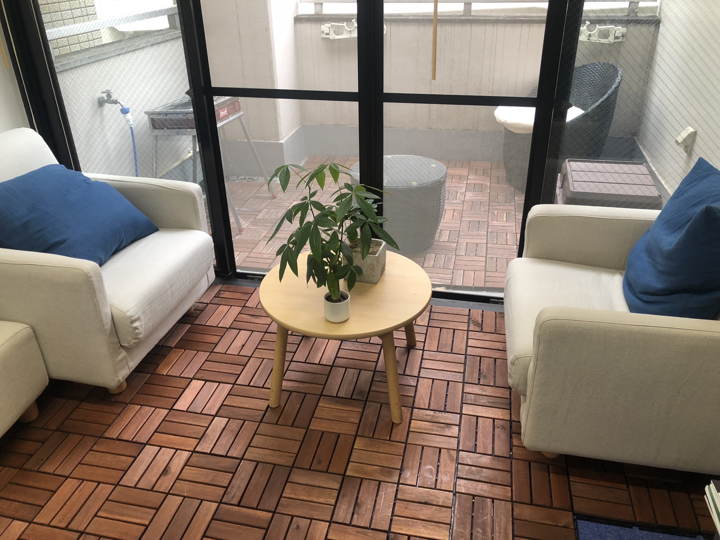 ワークスペースからすぐに出られる北側のベランダです。