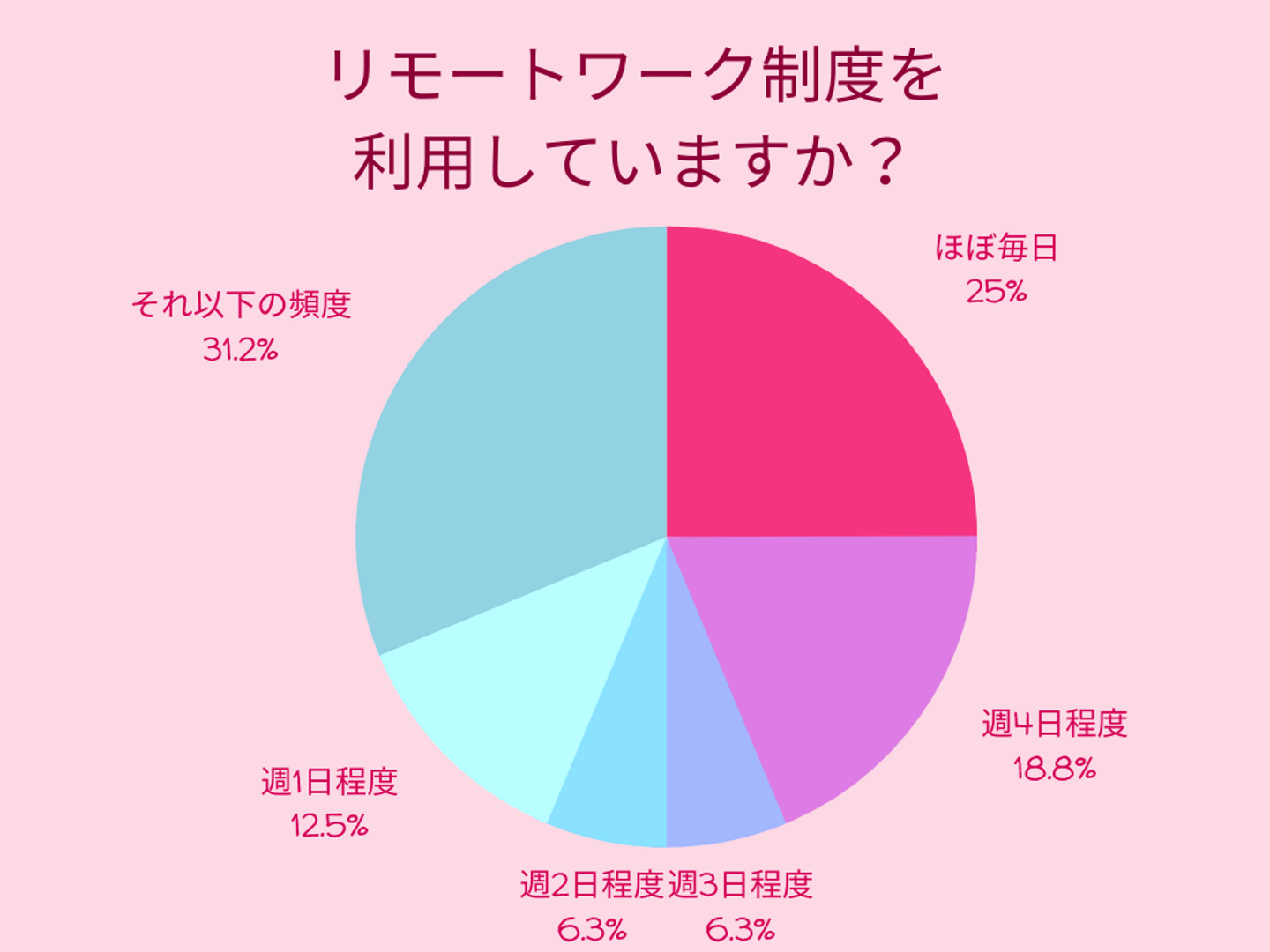 リモートワーク制度の利用状況について質問したところ、次のような結果となりました。
