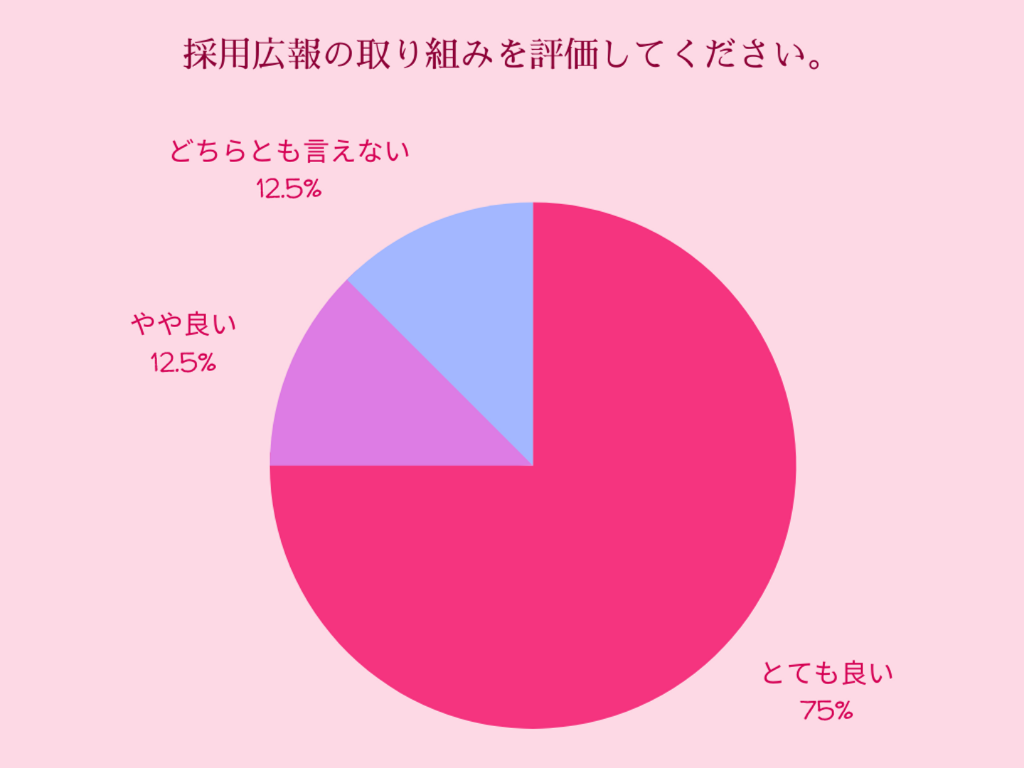 自社の採用広報活動については、全体の87.5%が「良い」「とても良い」と答えており、中でも「とても良い」と回答したのが75%を占めています。