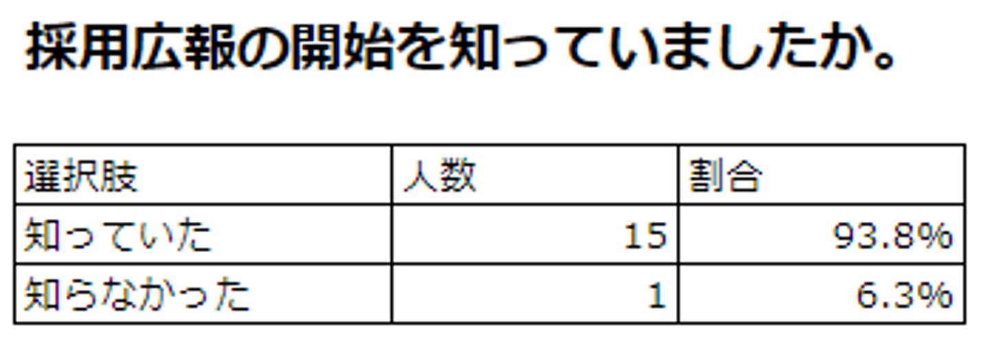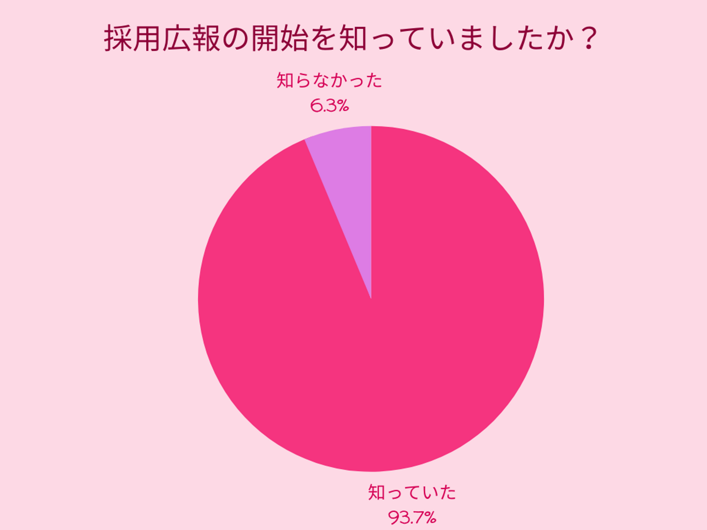 採用広報活動に関する認知についての質問では、93.8%とほとんどの社員が「知っていた」と回答、社内で周知が進んでいることがわかります。