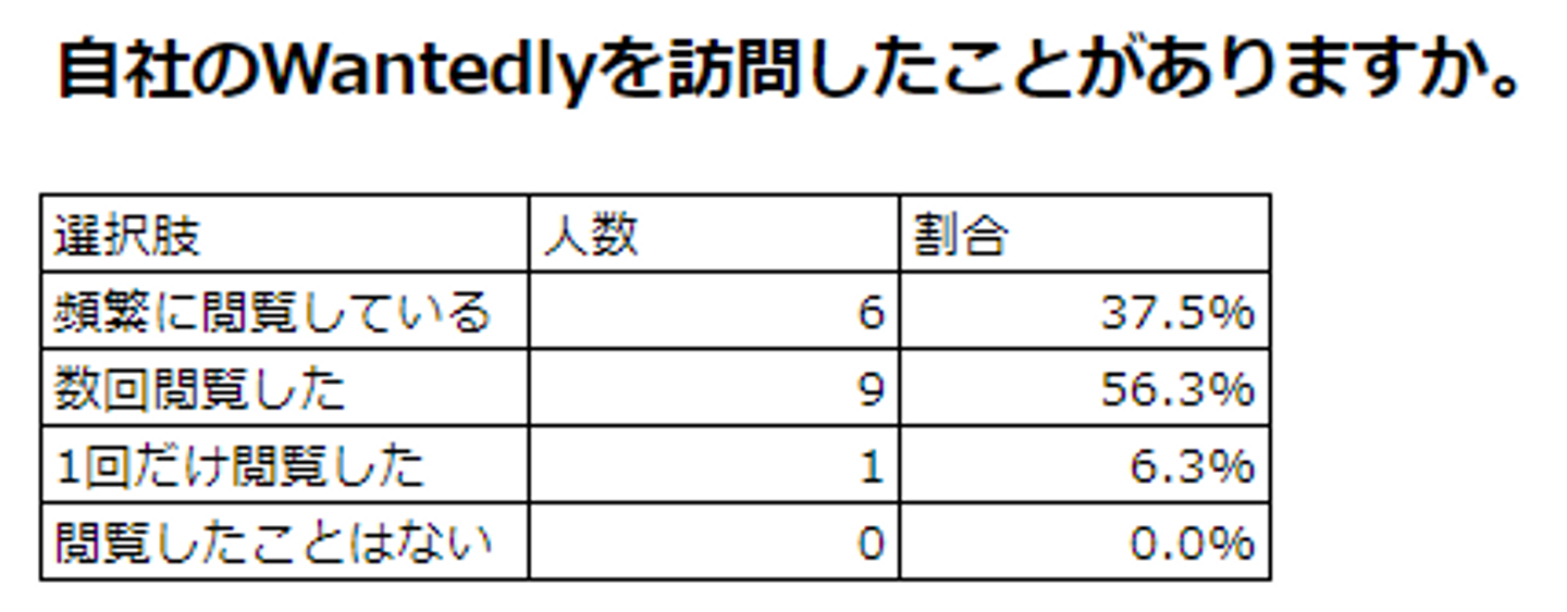 次に「インヴァスト株式会社のWantedlyページを訪問したことがありますか。」という質問をしたところ、次の通りの結果となりました。
