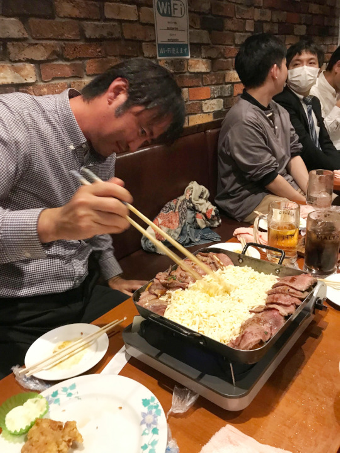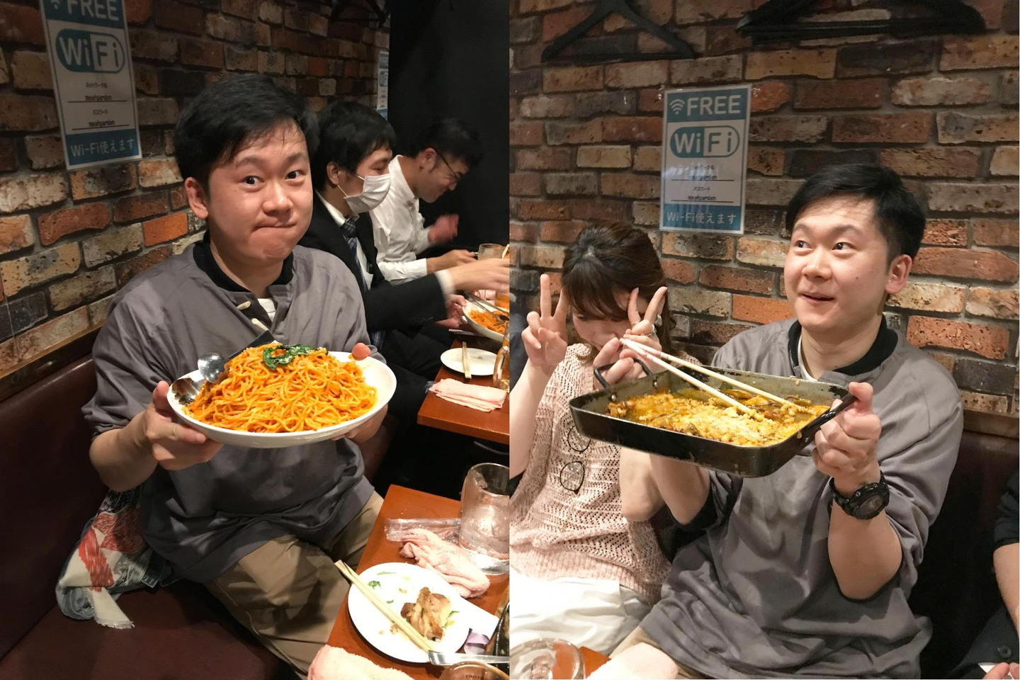 若手が多いシステム管理部だけに、メニューは食べ放題飲み放題!肉盛り合わせプレートをはじめ、唐揚げにローストビーフ、チーズタッカルビ、ナポリタンなどガッツリ系の料理を思う存分いただきました。