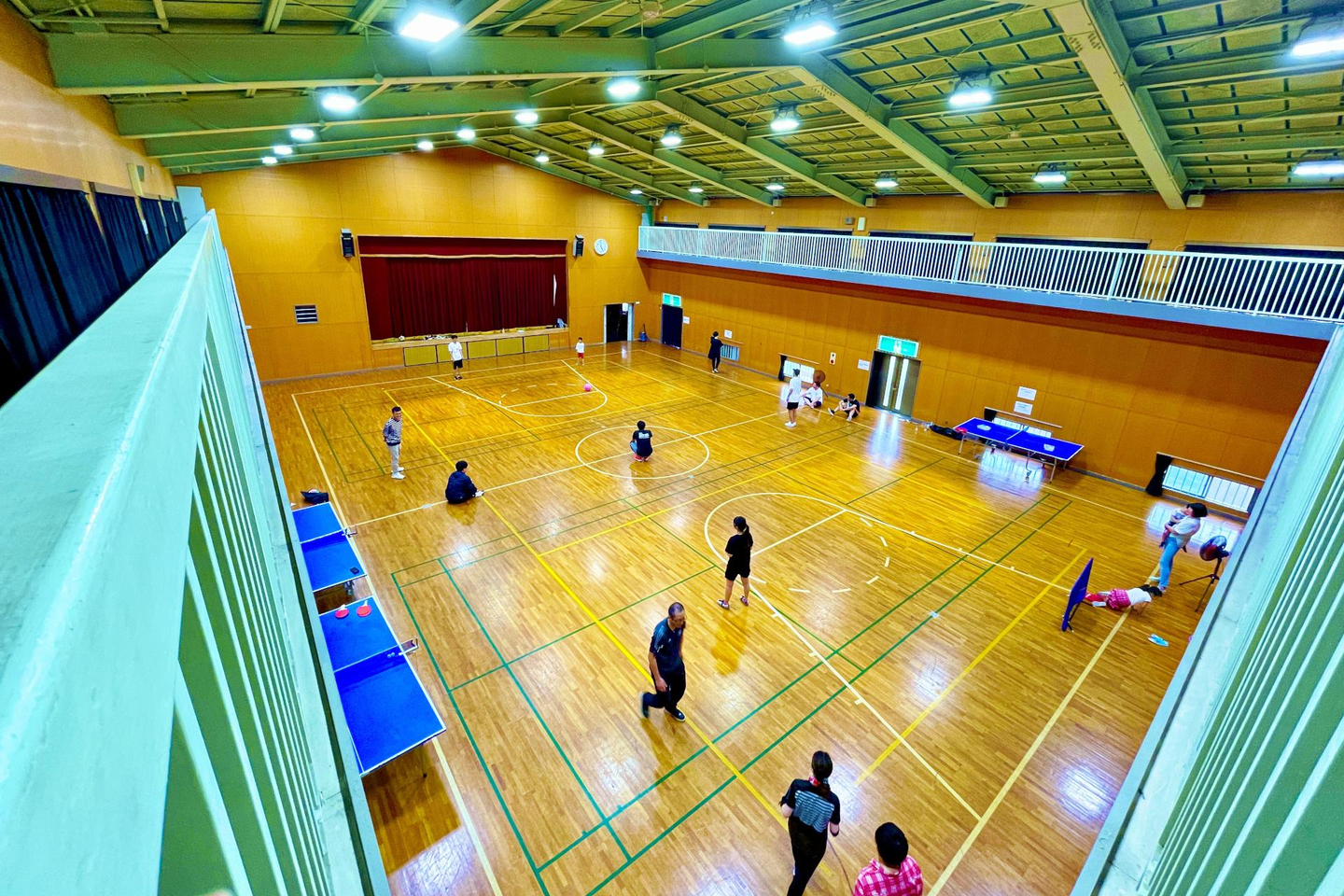 社員のお子さんまで含めて参加できた点が良かったようです。バドミントンに、全員によるドッジボールをご覧ください。体育館の両側には卓球台も置かれ、思い思いに楽しんでいました。