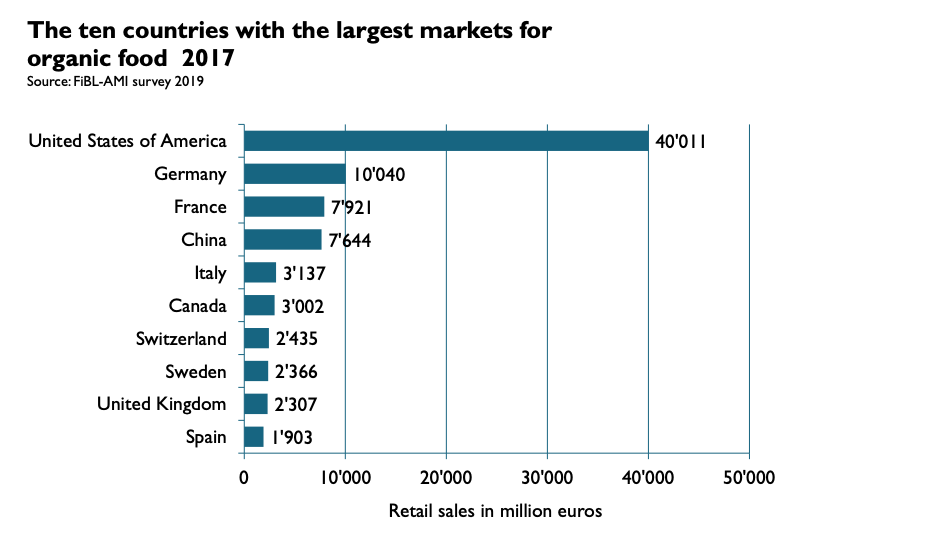 中国のオーガニック市場は、アメリカ、ドイツ、フランスについで第4位に台頭。