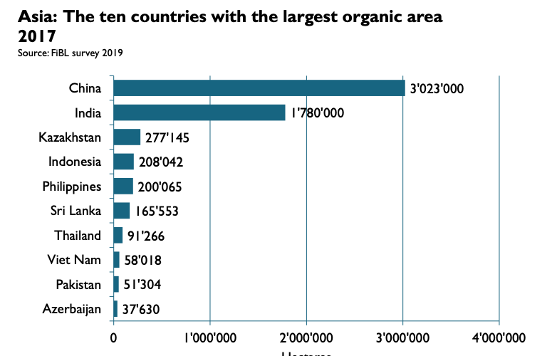 人口や農場面積でオーガニック市場を急速に発展していく中国に対して