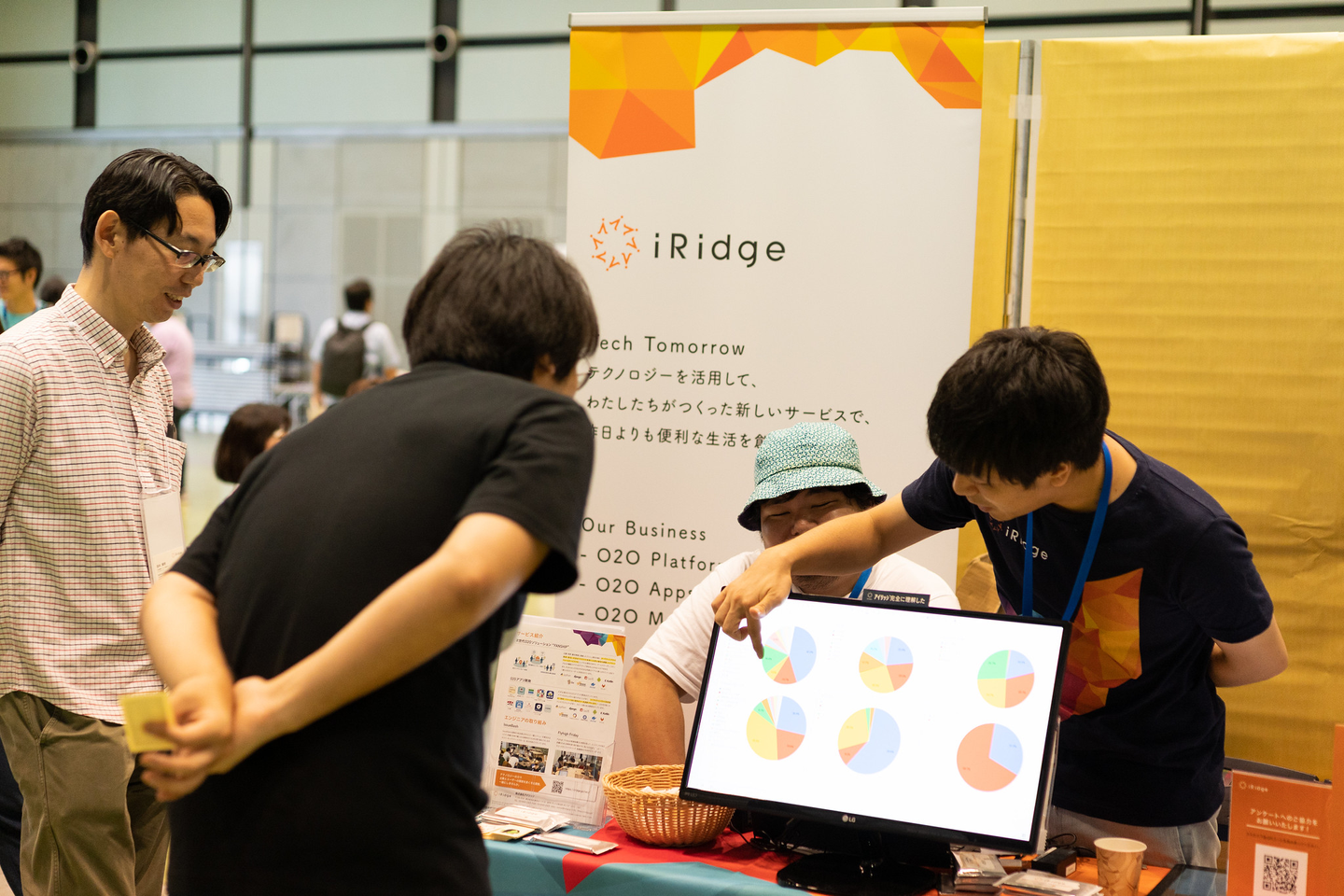アイリッジがブースを出す目的は、アイリッジという会社を知ってもらいたいからです。 まずは社名だけでも知ってもらいたい。 そして、参加者のみなさんはどれだけアイリッジを知っているのか。 それを知るための企画として前回に引き続きアンケート企画を行いました。 アンケートはGoogle Formを活用して、回答も集計も簡単に行えるようにしました。 今年の工夫として、タブレット端末を用意して事前にフォーム画面を開いておくことで参加者の手間をかけさせずに回答していただける仕組みを導入しました。 その結果、QRコードを読むためにスマートフォンを取り出す手間が省けて、スムーズに回答していただける環境ができました。 多くの方にお答えいただき、本当にありがとうございます。 「アイリッジ完全に理解した」となっていただければ幸いです。