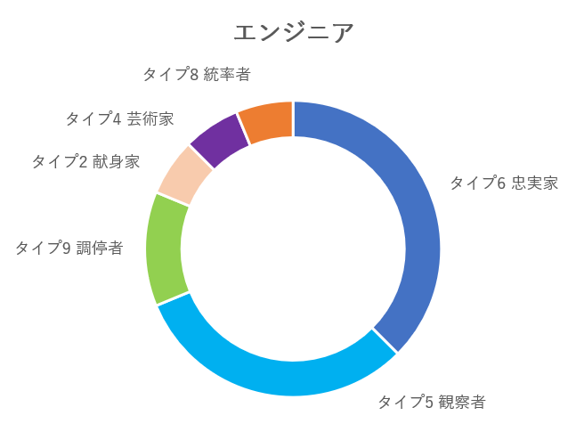 エンジニアに圧倒的に多かったのがタイプ5「観察者」とタイプ6「忠実家」。