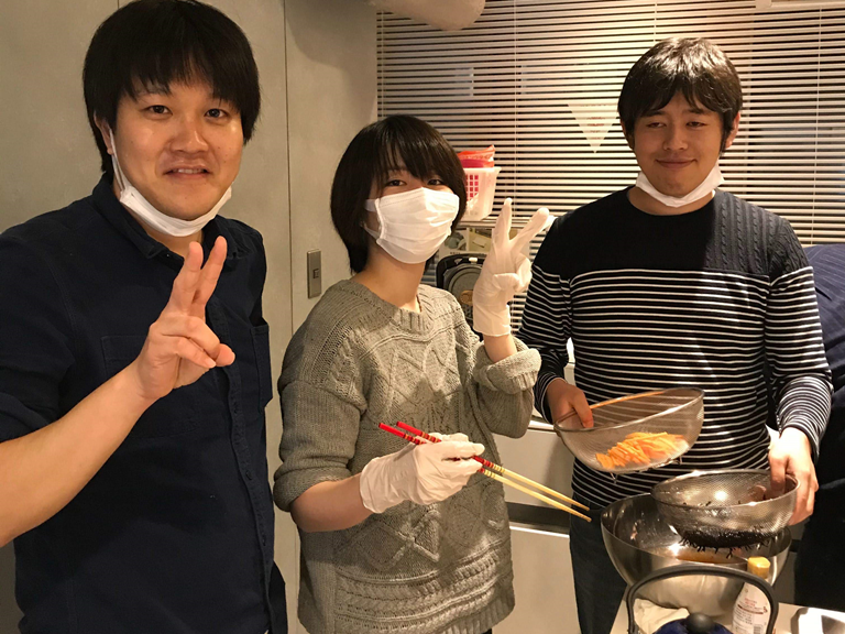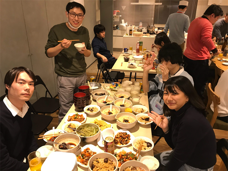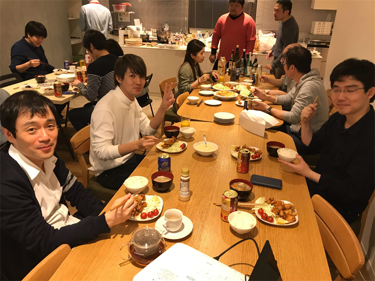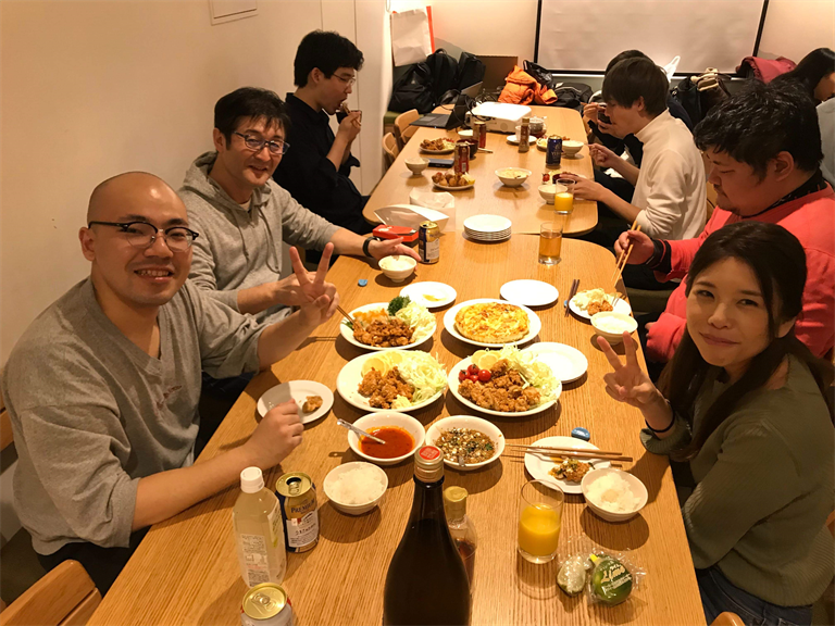 インターン生のAyumiさんが大活躍。サーバーサイドエンジニアのWeiさんが麺から作った(本格的過ぎ!)ラーメン的なものが最高でした。