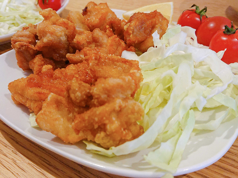 献立は衣を柿ピーでアレンジした唐揚げとアップルパイ。