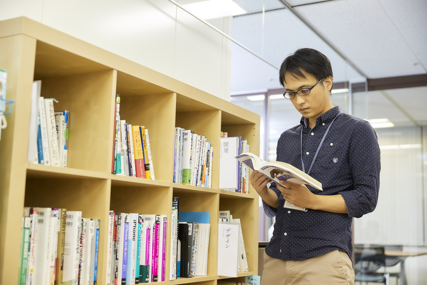 写真は、社員が経費購入した書籍や読み終わった本をシェアするスペースの「アイリッジ図書」ですね。本はよく読むんですか?