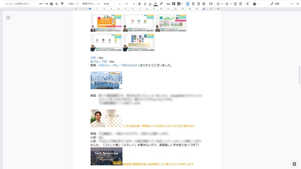 ※こんな感じの「スライド動き×司会セリフ」の台本を毎回作っています