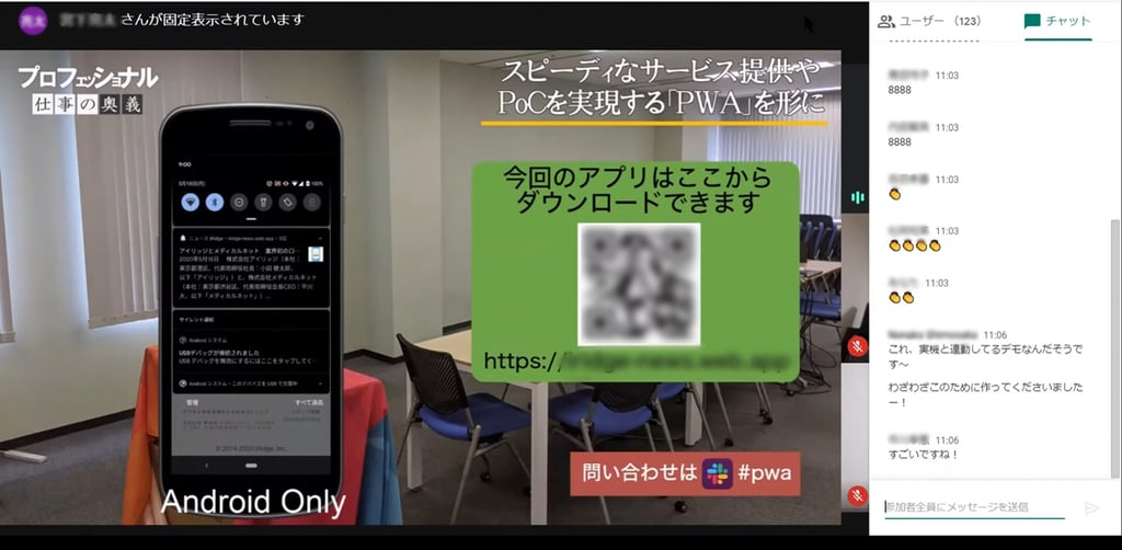 対面の時からカジュアルな場ではありましたが、アイリッジの人たちのキャラクターもあり、対面ではみんな静かに聞いたあと拍手するのみで、盛り上がりにくい雰囲気があったと思うんです。リモートの方がちょっとした感想やツッコミを書き込みやすいのかも、と思いました。