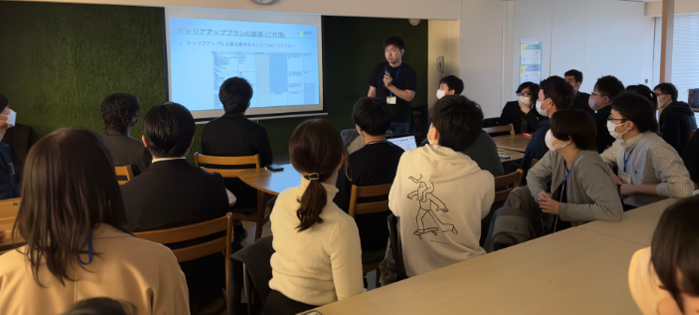 個々の社員の適性や経験、本人の意向をもとに研修や教材、演習の機会を提供しています。