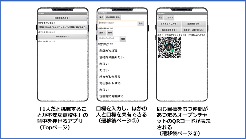 挑戦したいという想いを持った高校生があきらめることがないように。挑戦しようとする高校生の背中を押せるアプリをつくることにしました。