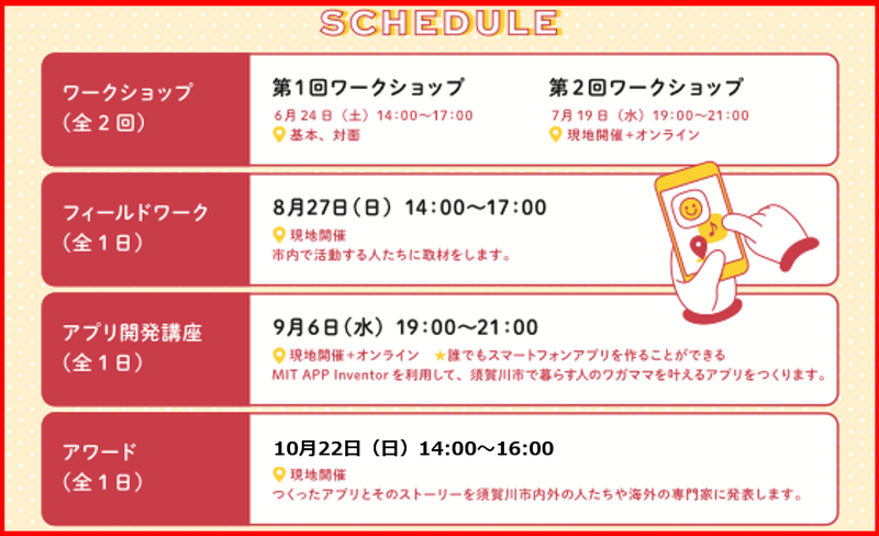 須賀川ワガママLabでは、須賀川市で暮らす中高生の皆さんと一緒に4ヶ月間活動し、地域のことを知り、さらに地域で暮らす人たちの困りごとを解決するアプリをつくる挑戦を行ってきました。