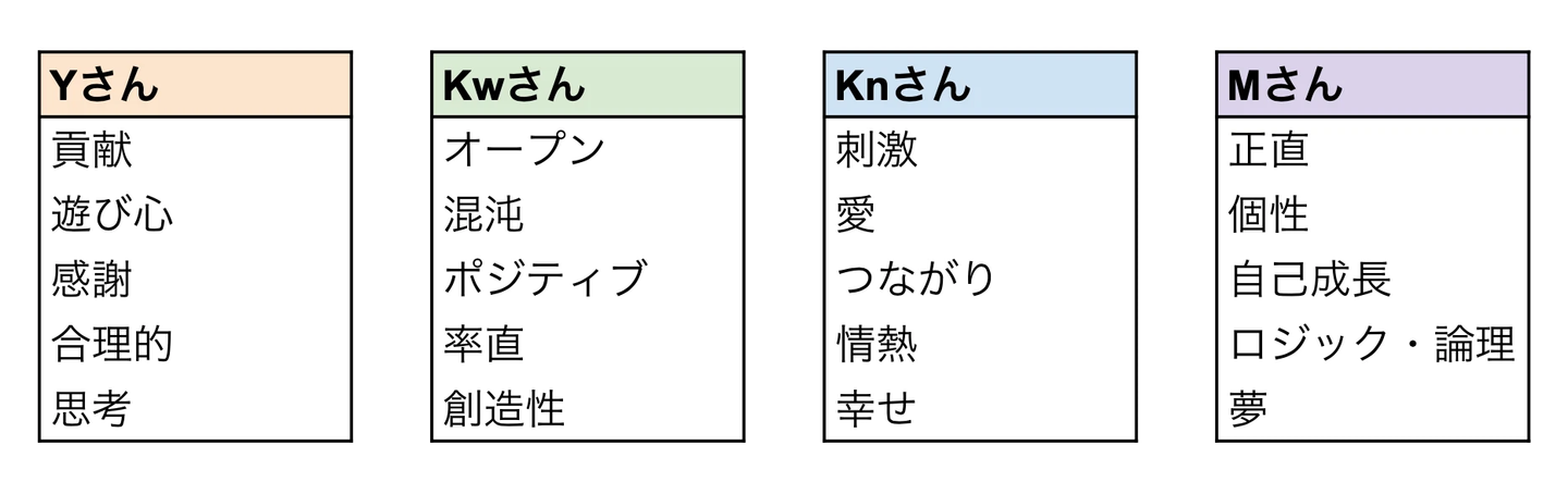 ちなみにチーム内の他メンバーの価値観はこんな感じでした!