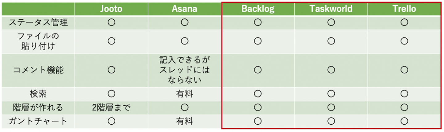 まずは、絶対に必要な条件・機能をもとに、タスク管理ツールを比較します。