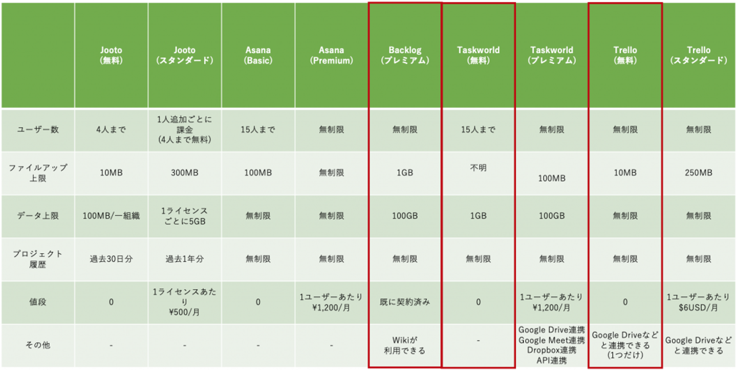 譲れない条件や料金を比較して、今回はBacklogまたはTrelloが適切そう。
