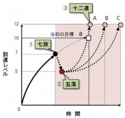 これまで日本では学校から企業まで「いつも100点を目指してがんばろう!」という考えが浸透してきたなかで、村山昇(2007)※1が「七放・五落・十二達」の法則というものを提唱しました。