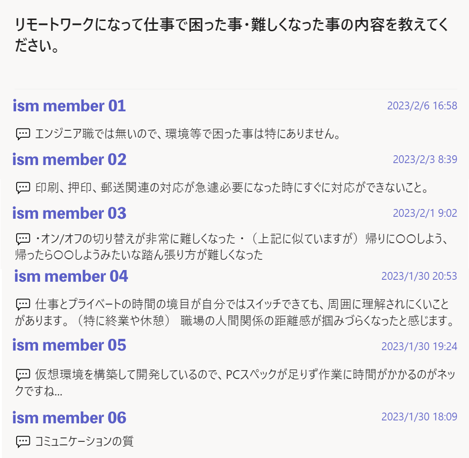 今日はイズムメンバーに、「リモートワークで仕事やプライベートで困った事・難しくなったこと」について色々と聞いてみました!