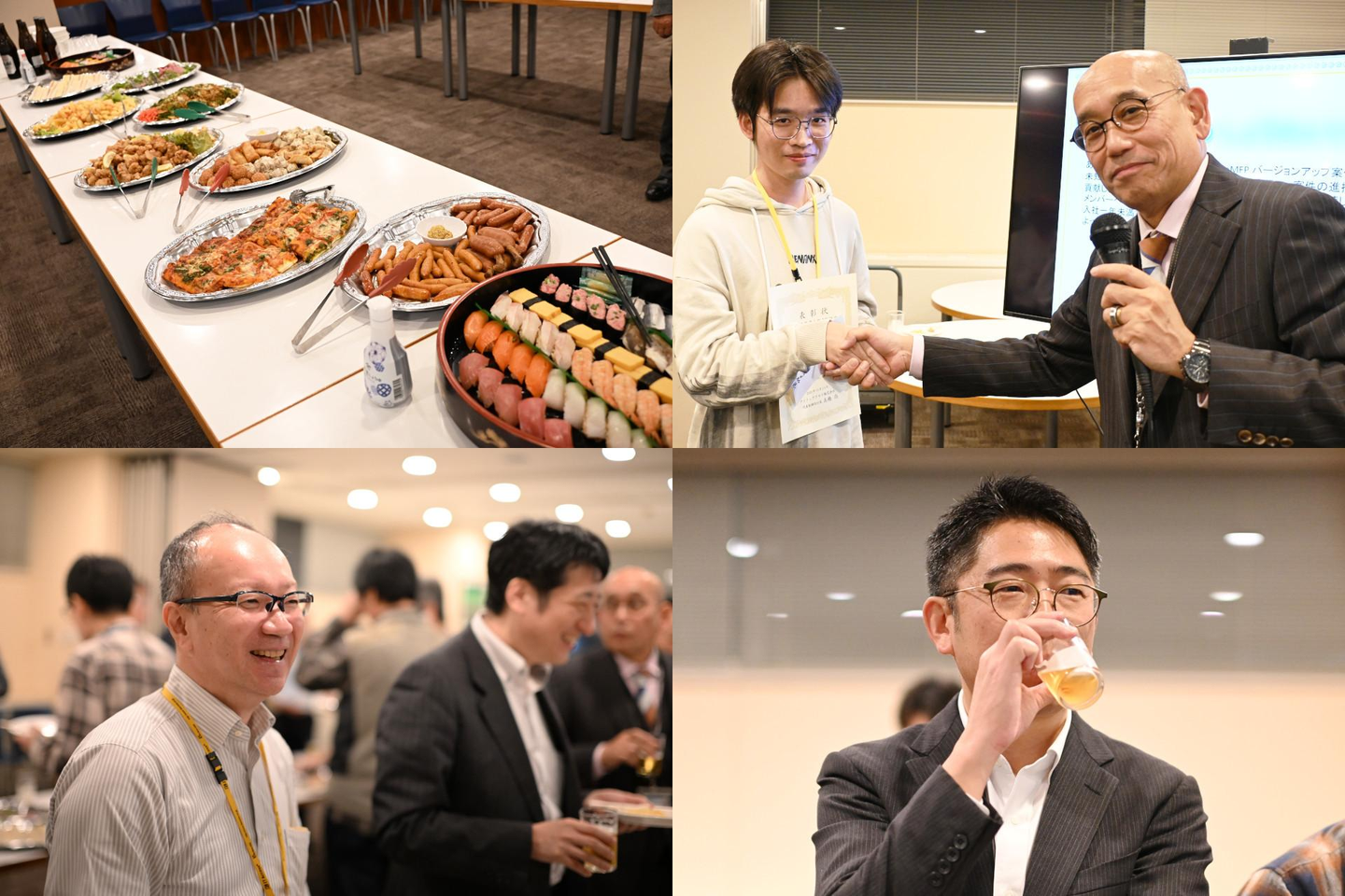 全事業部からの発表が終了すると、高橋社長から各発表者をねぎらう総評が語られ、懇親会へと移行しました。懇親会は本社ビル内のレストランで開催されるのが恒例です。