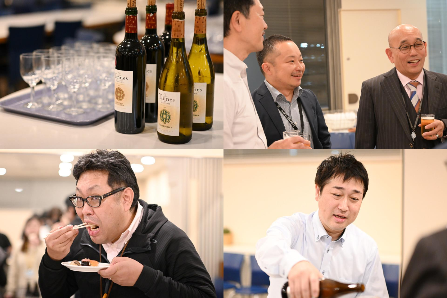 立食形式でワインまで用意されています。また、懇親会では半期の成績優秀者も表彰されていました。おめでとうございます!