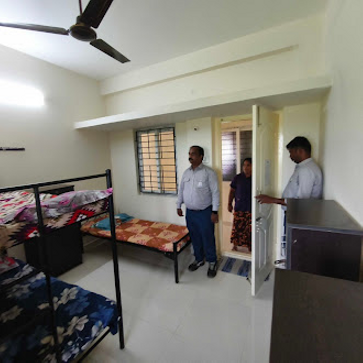 写真:(上)訓練生が過ごす寮 (下)コマツインディア内朝礼の様子